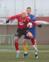 Yevgen með flotta vörslu eftir að Sigurður Steinar kemst einn geng markvöri. Yevgen kemur að Sigurði og lokar fyrir markinu.