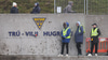 Boltinn er mjög óútreiknarlegur í þessum vindi og það sést að leikmenn hafa erfitt að geta spilað almennilega.