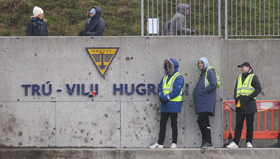 Grótta hefur hér leikinn aftur á ný, það hefur bara bætt í vindinn frá fyrri hálfleiknum.