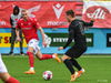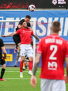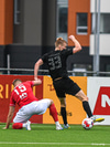 Logi Hrafn fær boltann og nær að koma boltanum út til vinstri á Vuk Oskar sem nær skoti en Schram ver.
