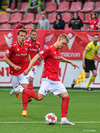 Birkir Heimisson fær boltann fyrir utan teig og leggur hann til hliðar á Birki Má sem nær skoti en boltinn í varnarmann.