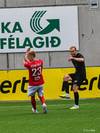 Tryggvi Hrafn tekur spyrnuna en Sindri Kristinn kýlir boltann frá.