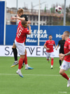 Adam Ægir tekur aukaspyrnu stutt og boltinn út til vinstri og Sigga Lár sem á fyrirgjöf beint á hausinn á Hólmar sem nær skalla en boltinn framhjá.