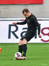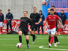 Helgi Mikael flautar til leiks. FH byrjar með boltann og sækir í átt að Perlunni.