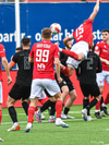 Birkir Már fær boltann og gefur boltann inn á teiginn og Davíð Snær setur hann í hornspyrnu.