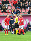 Aron Jóhansson fer meiddur af velli. Orri Hrafn kemur inn í hans stað.