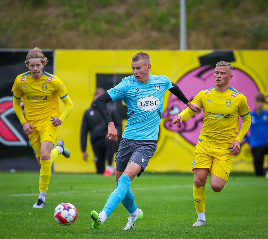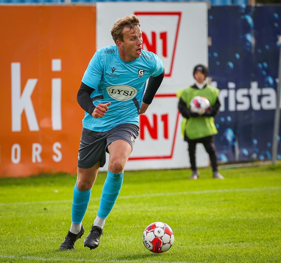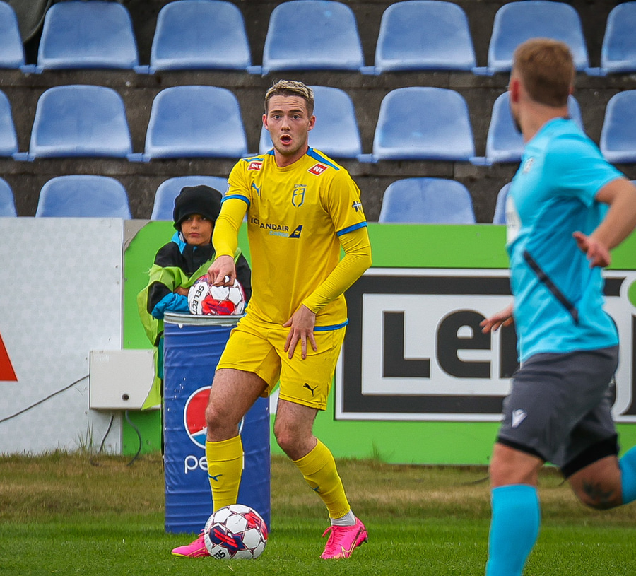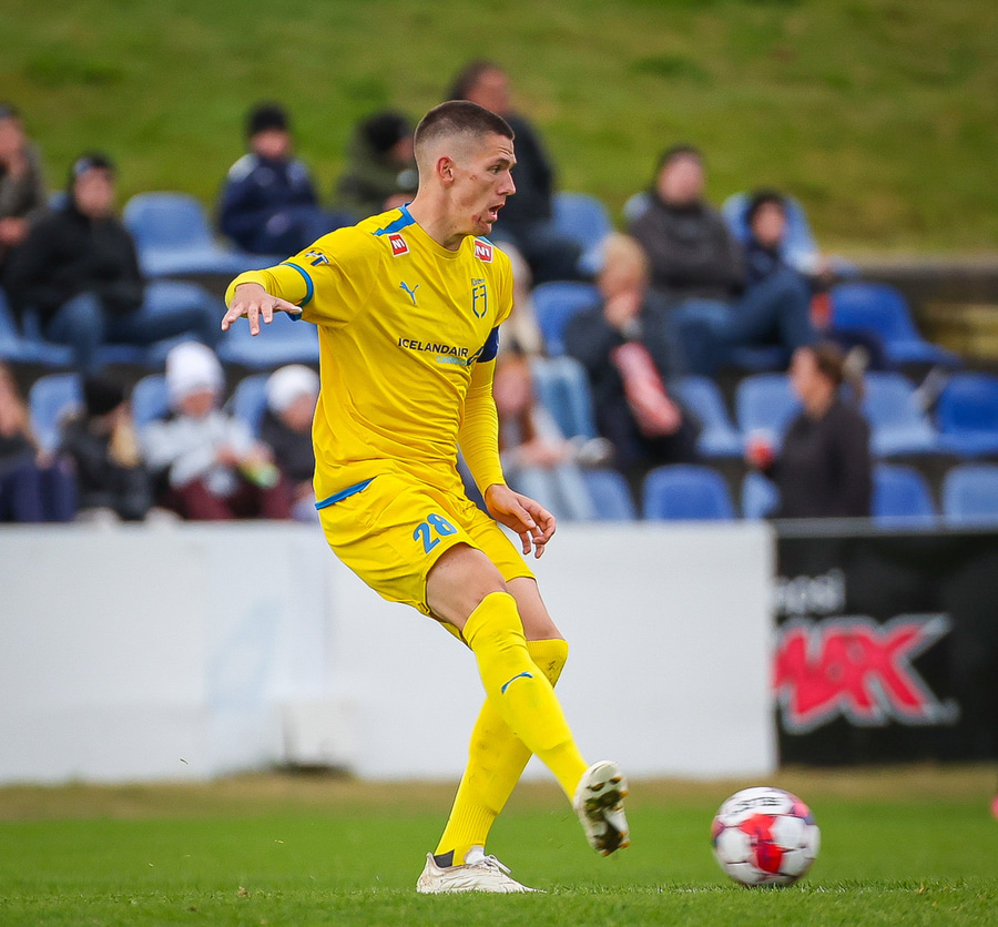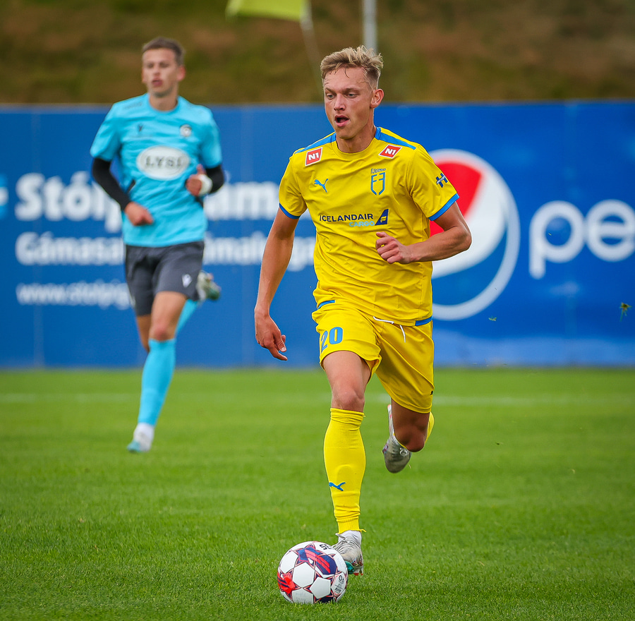 Dagur Hammer fær flotta sendingu frá Kristófer en sendingin frá Degi ratar ekki á fjærstöngina, allavega ekki nógu fast því Sigurjón kemst í boltann.