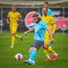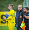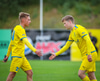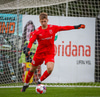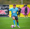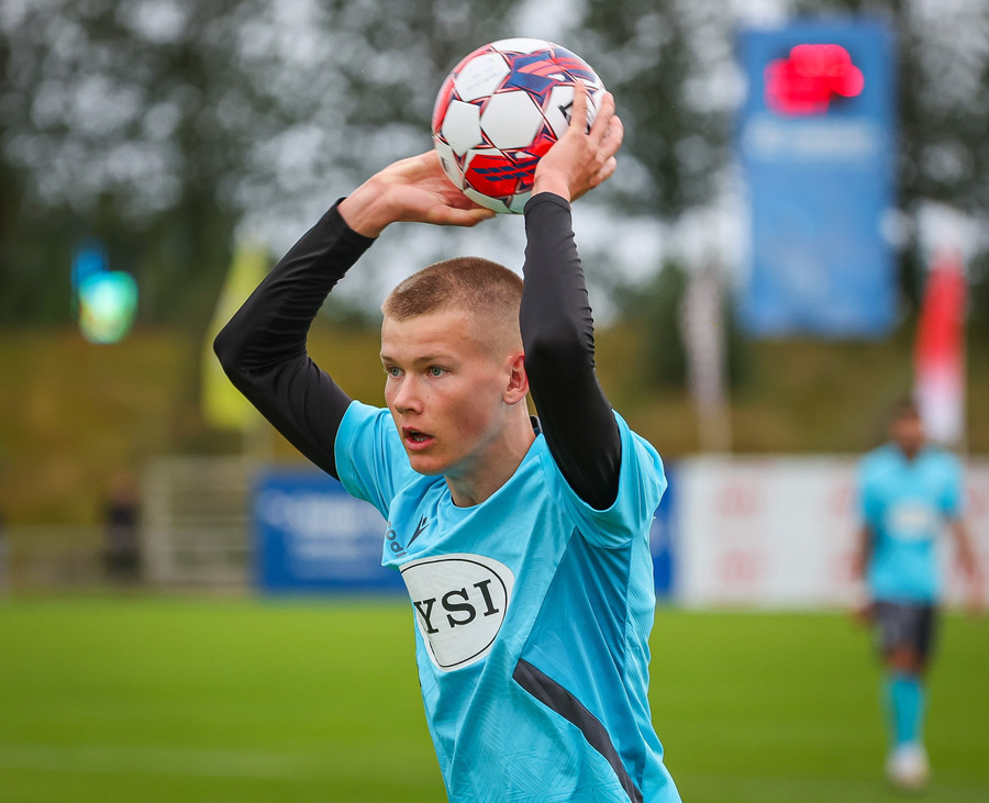 Kristófer Dagur í flottri stöðu úti hægra megin í teignum, læðir boltanum á nær og Axel rennir sér í hann. Boltinn fer ekki nógu fast af Axel og Aron Dagur týnir boltann upp í teignum.