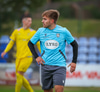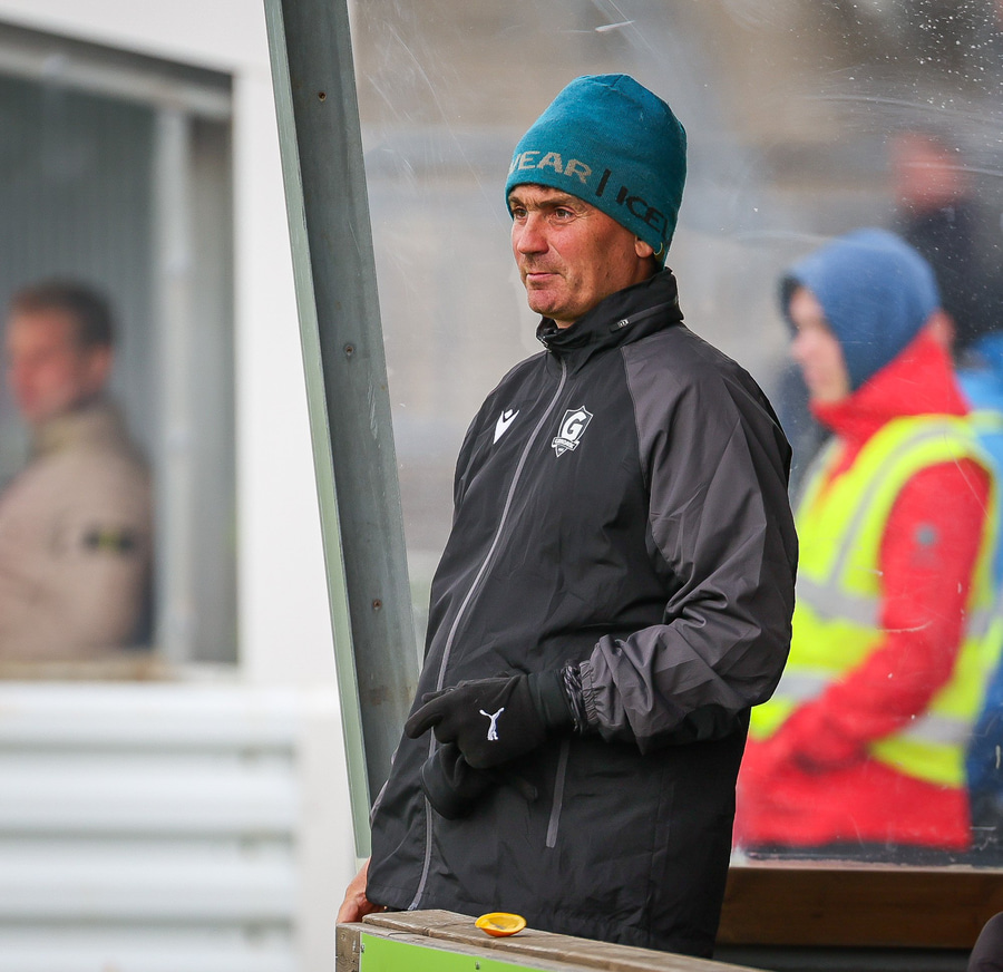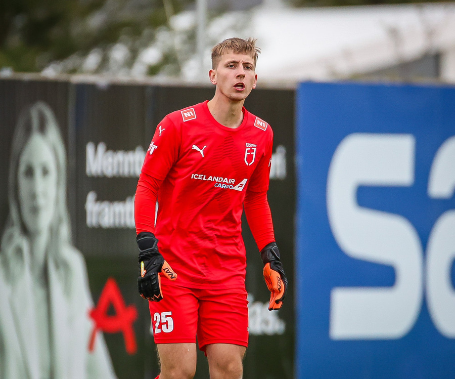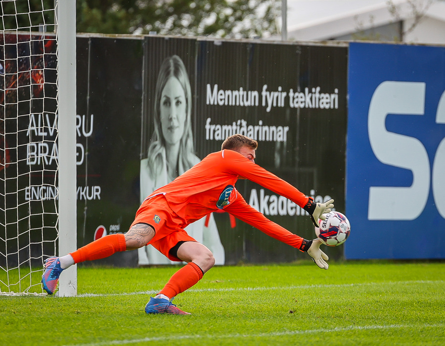 Edi Horvat með flottan skalla eftir fyrirgjöf frá Kristófer en Sigurjón er vel á verði og ver boltann til hliðar.