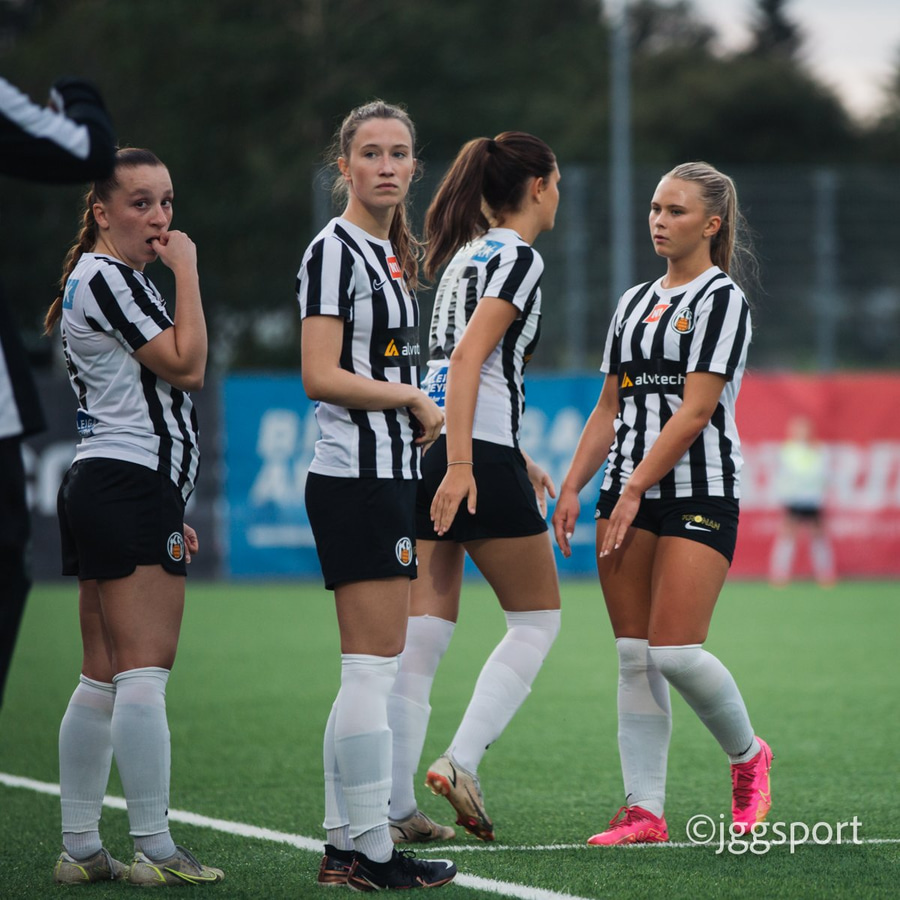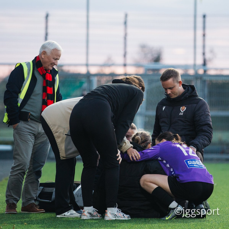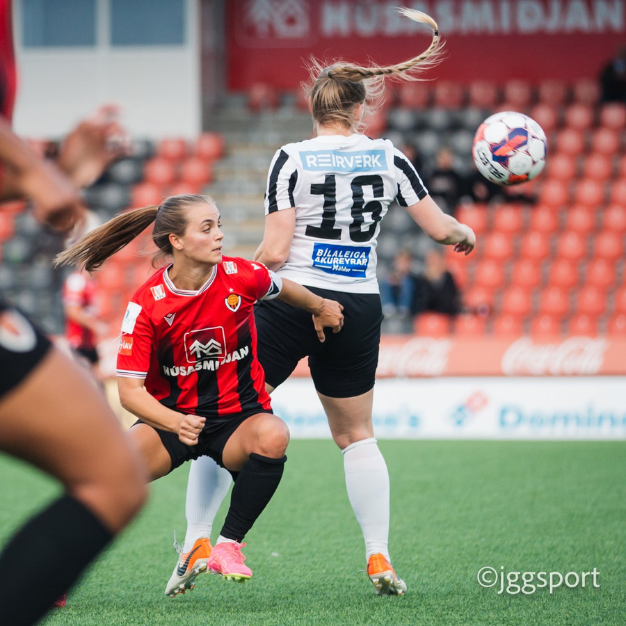 Í þetta sinn er það Nadía sem skallar, en skallinn ekki góður og Bergljót grípur hann.