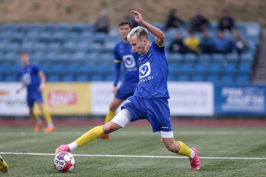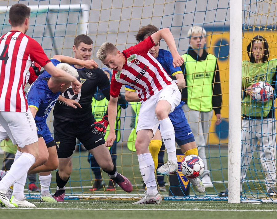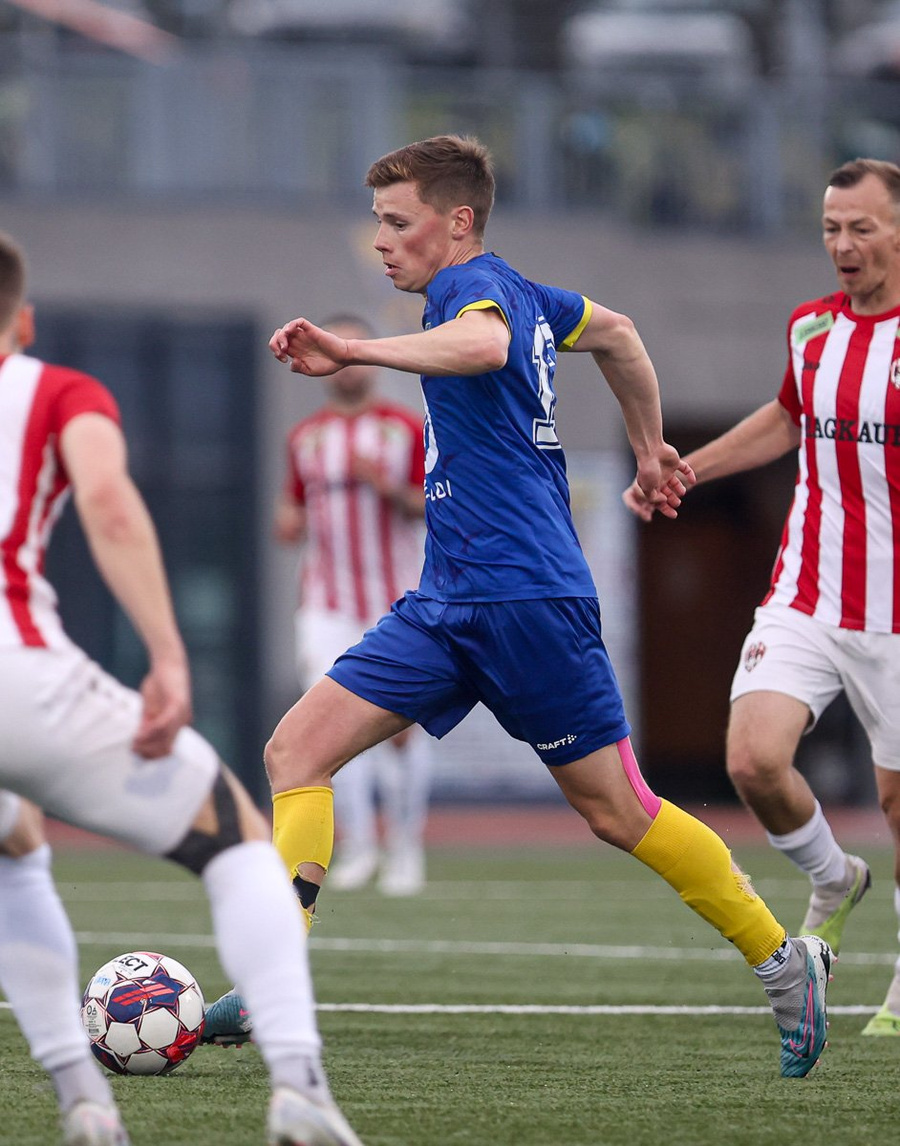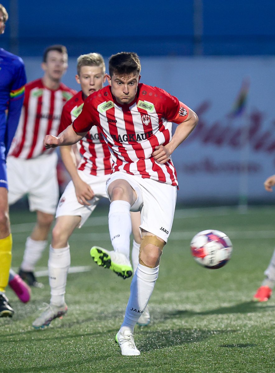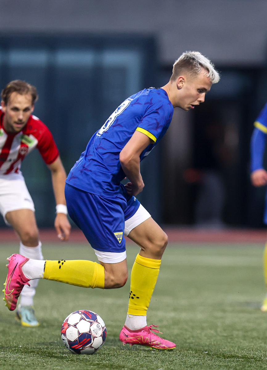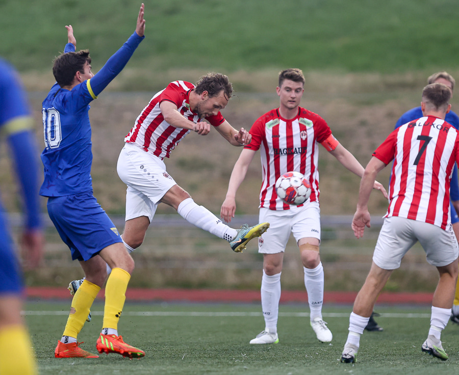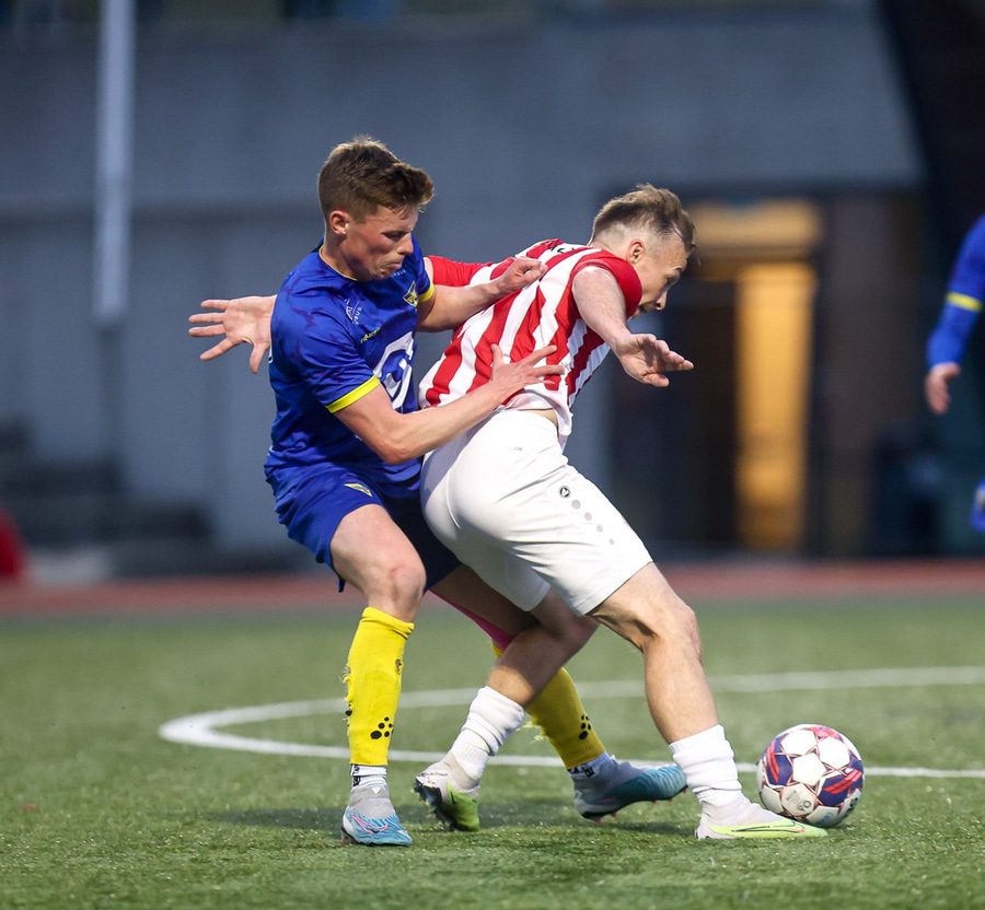 Kostiantyn Pikul með alveg hrikalega hreinsun beint á Arnar Núma sem tekur skot en Kostiantyn nær að henda sér fyrir það. Arnar Númi fær boltann aftur, rennir honum til hægri á Kristófer sem setur hann í fjær.