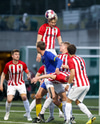 Tómas fær boltann inn í teignum og er að gera sig líklegan til að setja hann á markið. Kristófer eiginlega tekur boltann af honum en Tómas getur lítið kvartað þar sem Kristófer klárar smekklega í nærhornið.