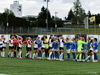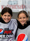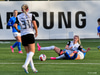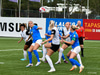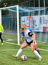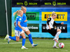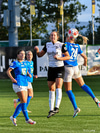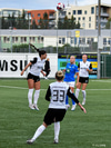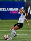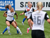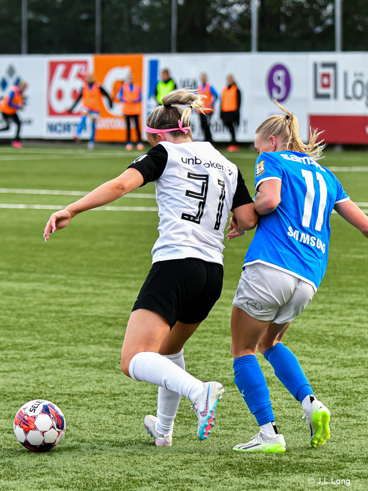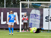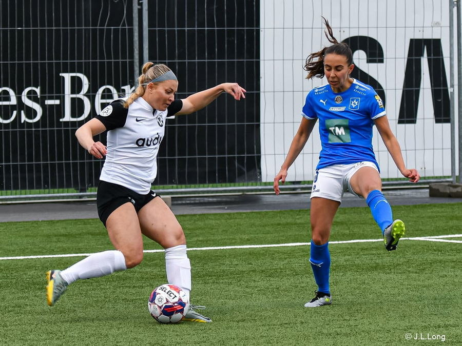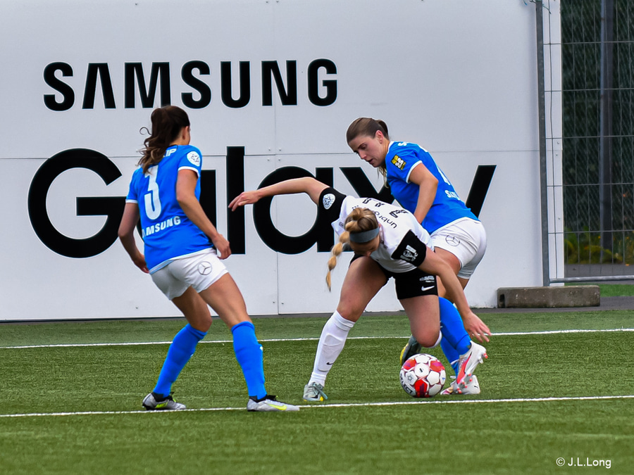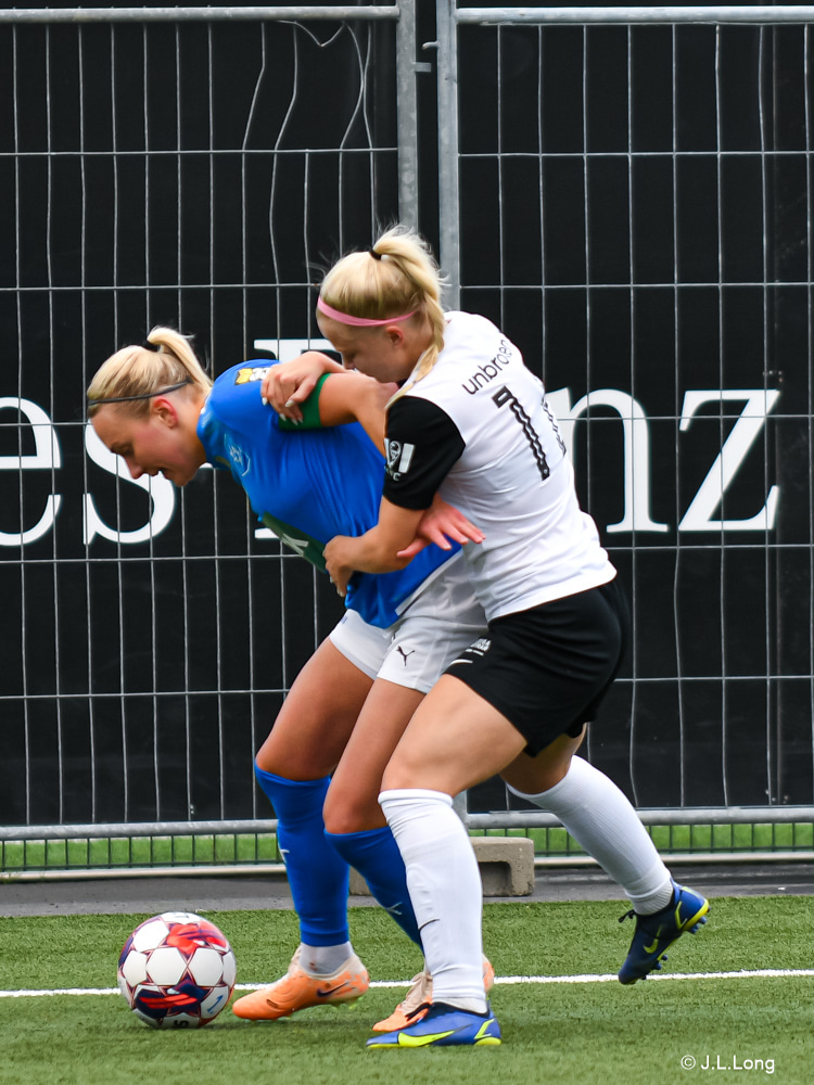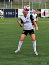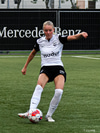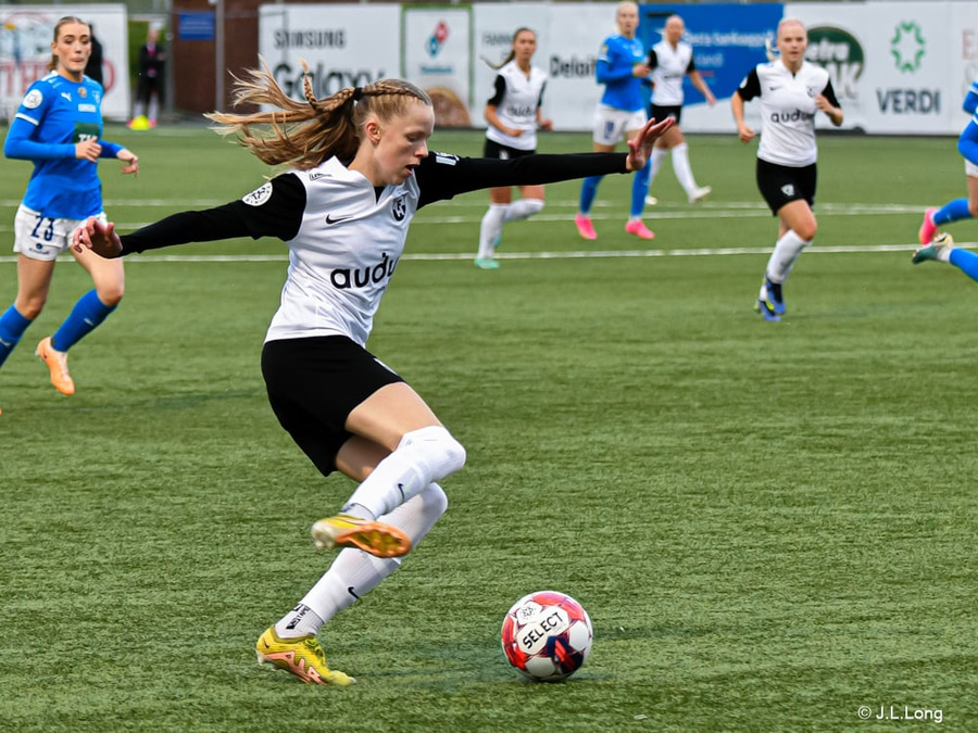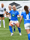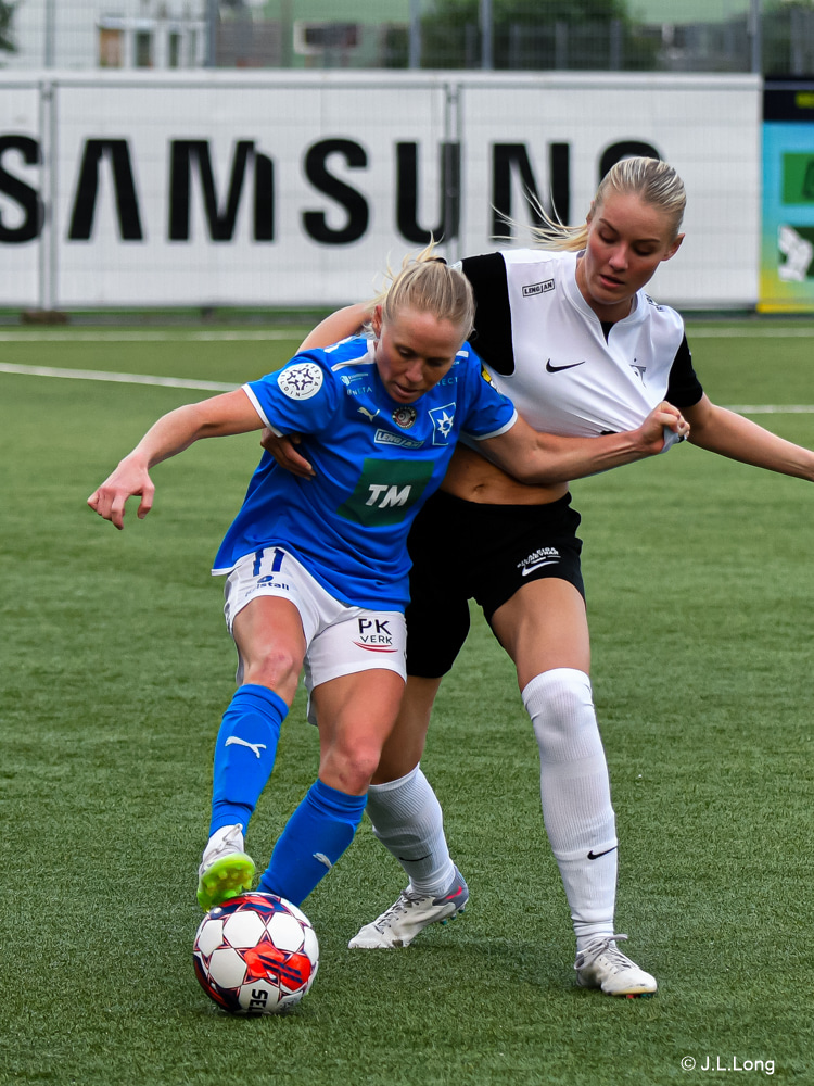 Colleen reynir skotið fyrir gestina af talsverðu færi en beint í fang Erin í markinu.