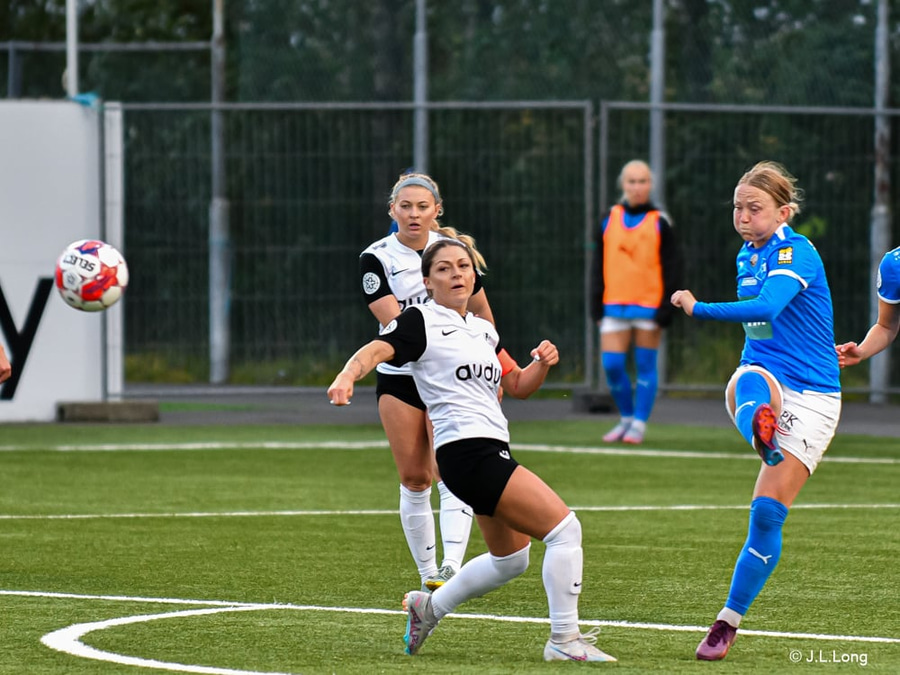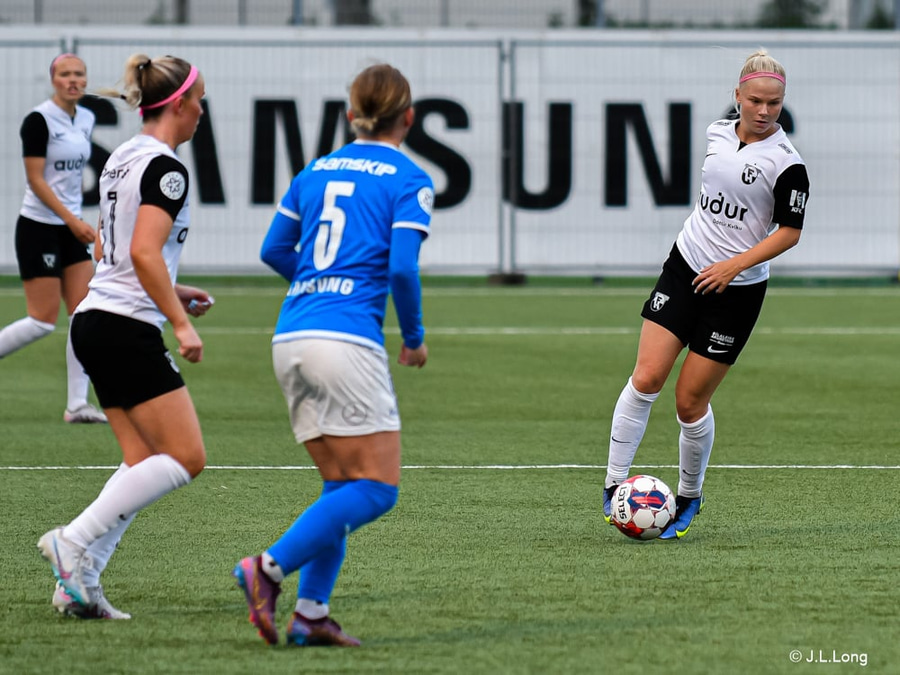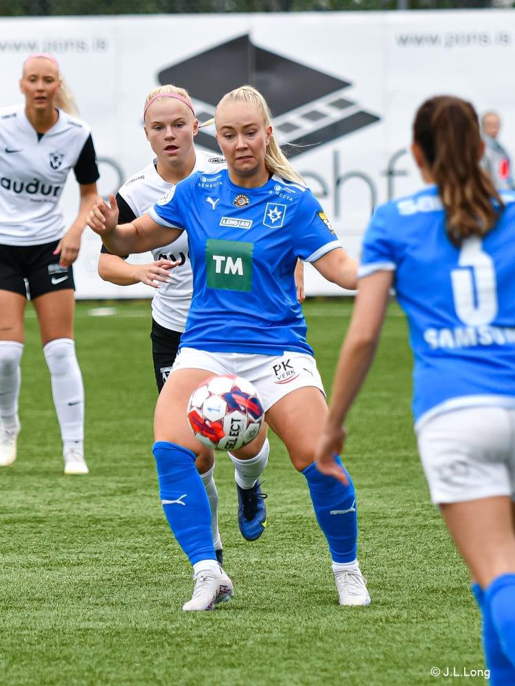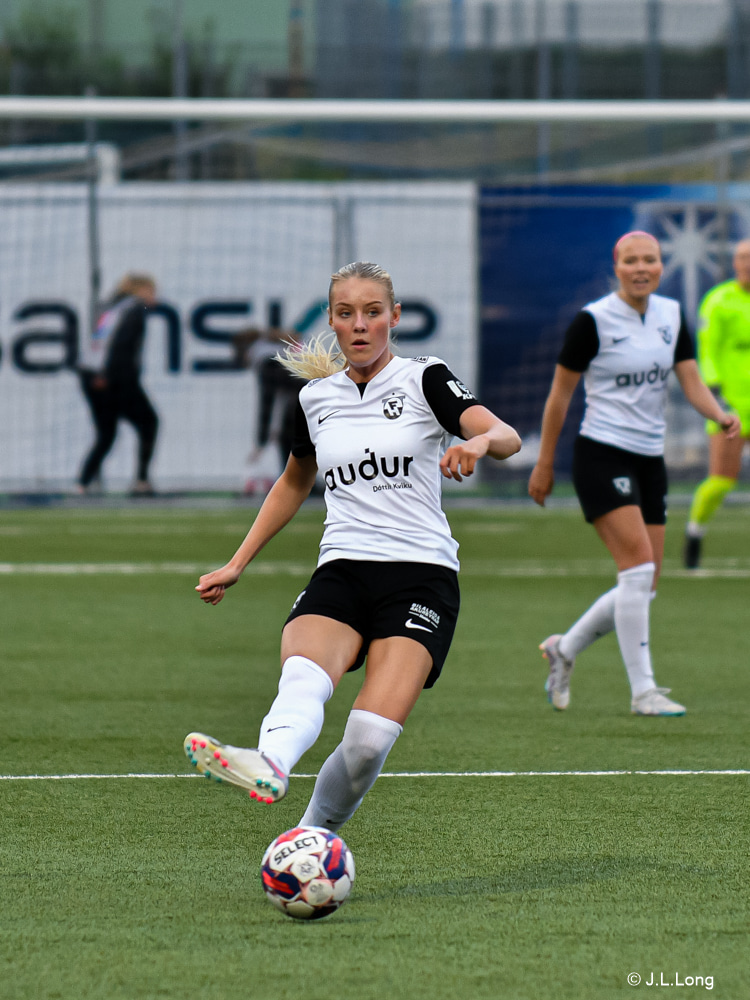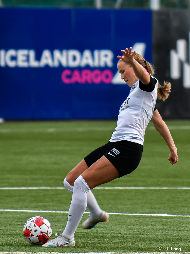 Thelma Karen með skot/fyrirgjöf úr teignum hægra megin. Finnur hvorki samherja né markið og markspyrna niðurstaðan.
