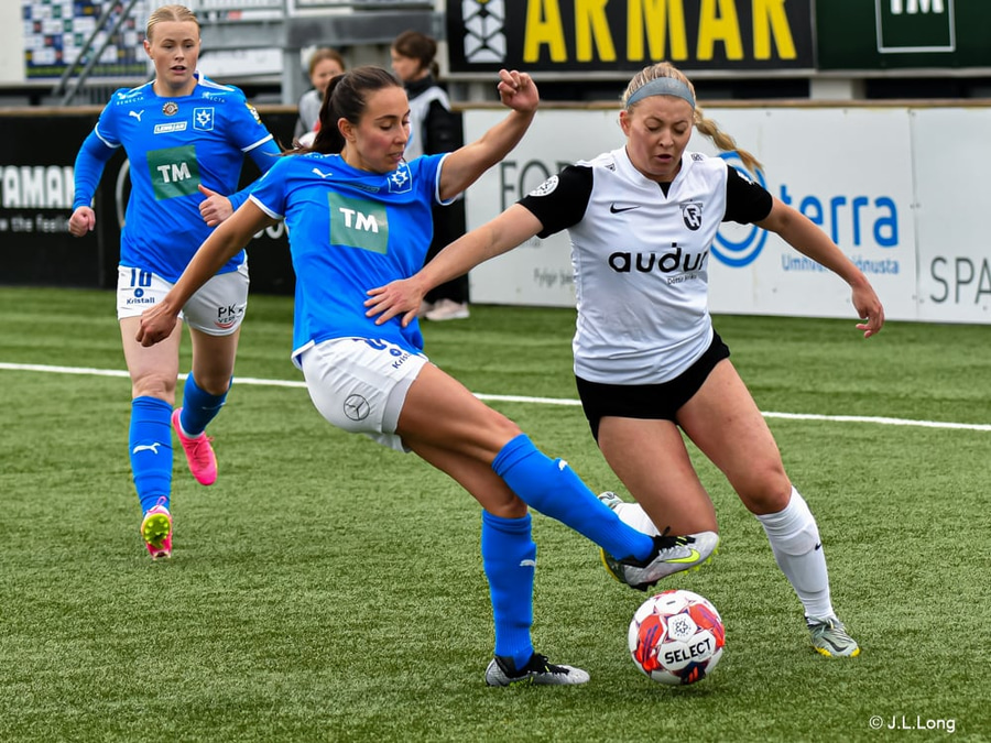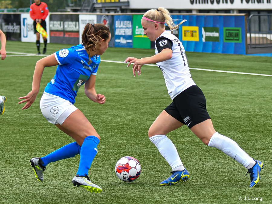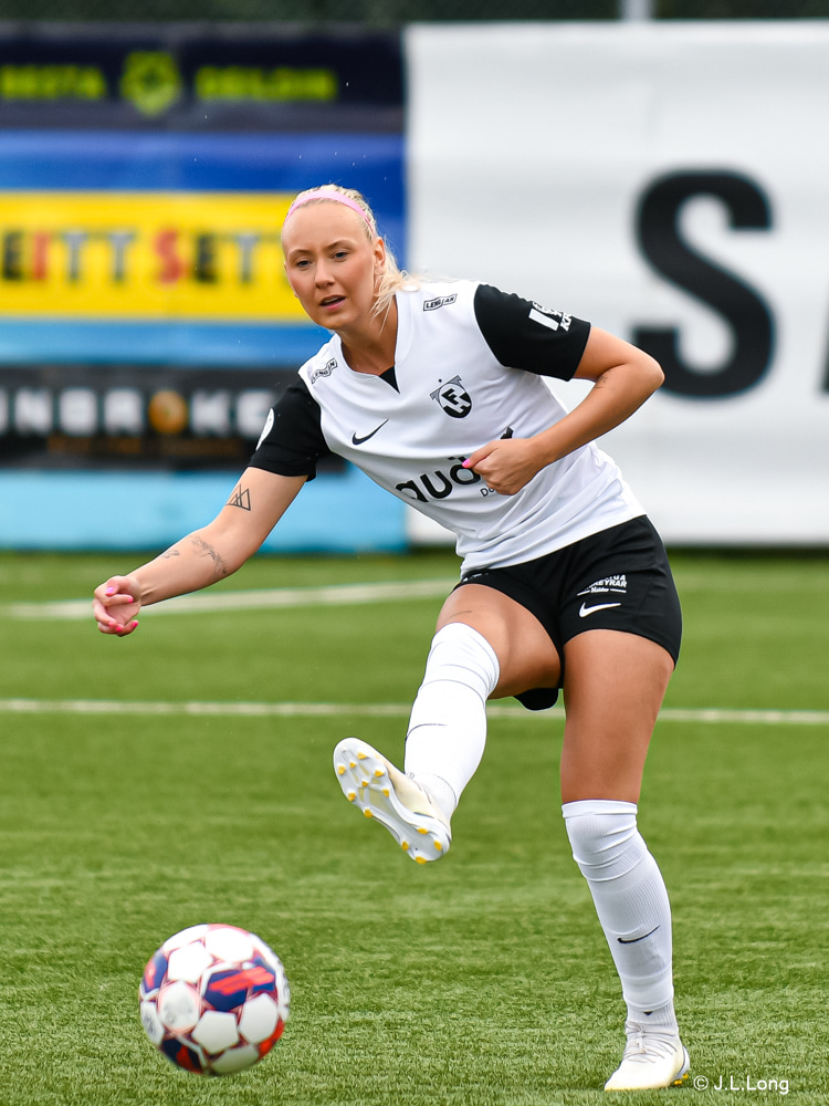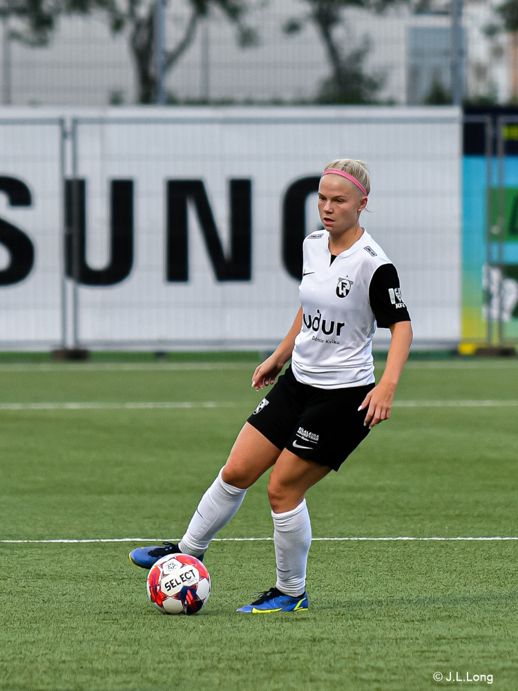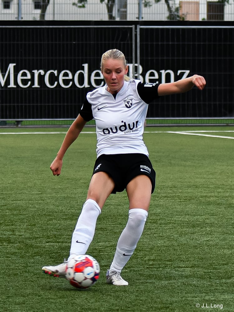 Thelma Karen með skot/fyrirgjöf úr teignum hægra megin. Finnur hvorki samherja né markið og markspyrna niðurstaðan.