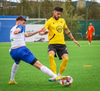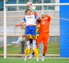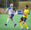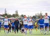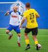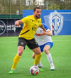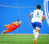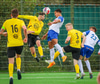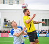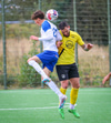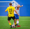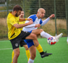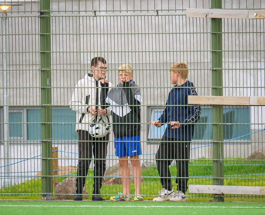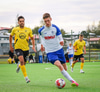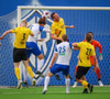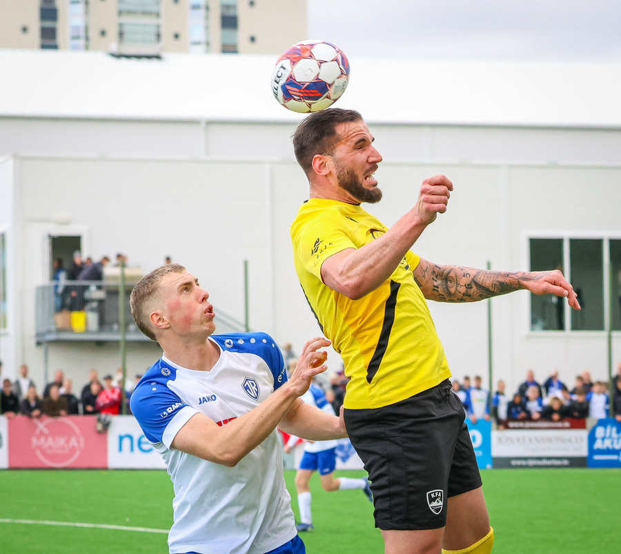 Fyrirgjöf frá Braga, Nikola og Ívan reyna við boltann. Nikola missir hann en KFA ná að bægja hættunni frá