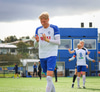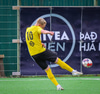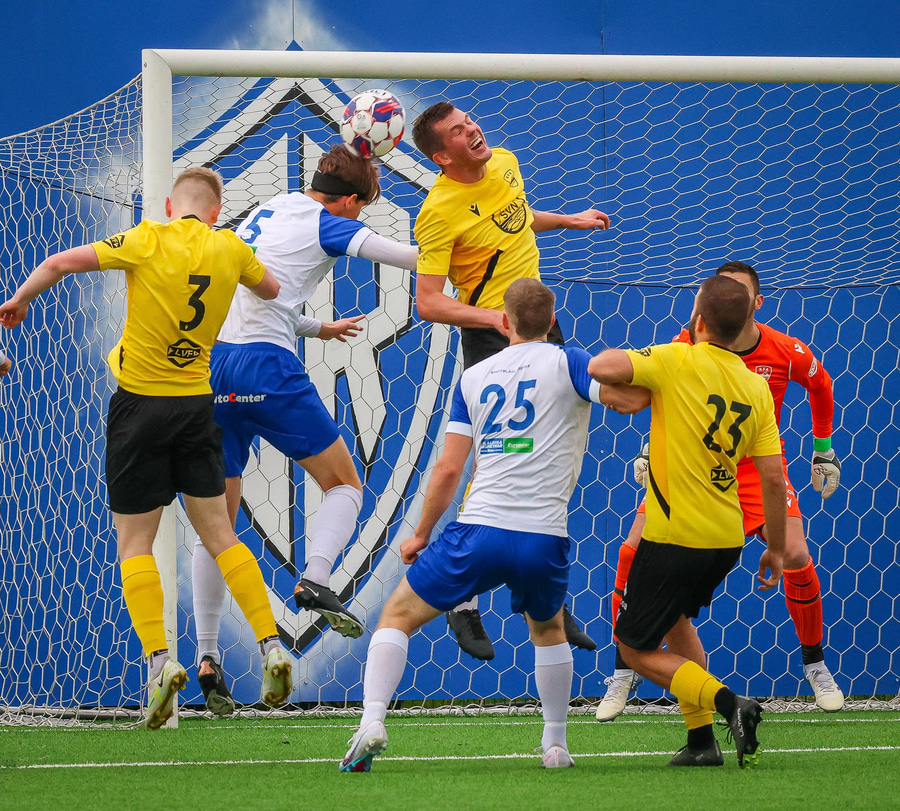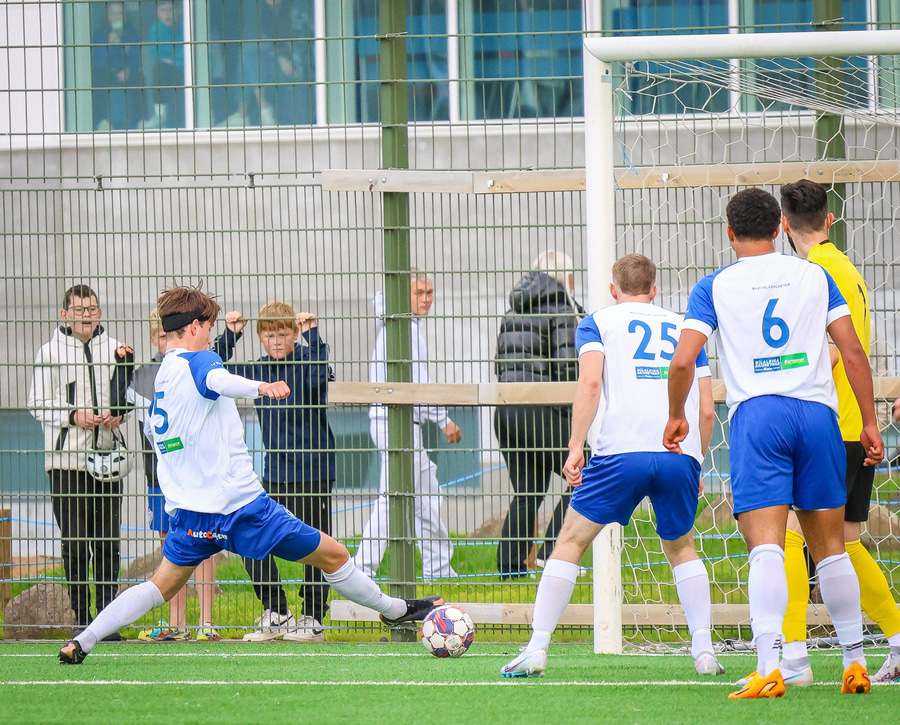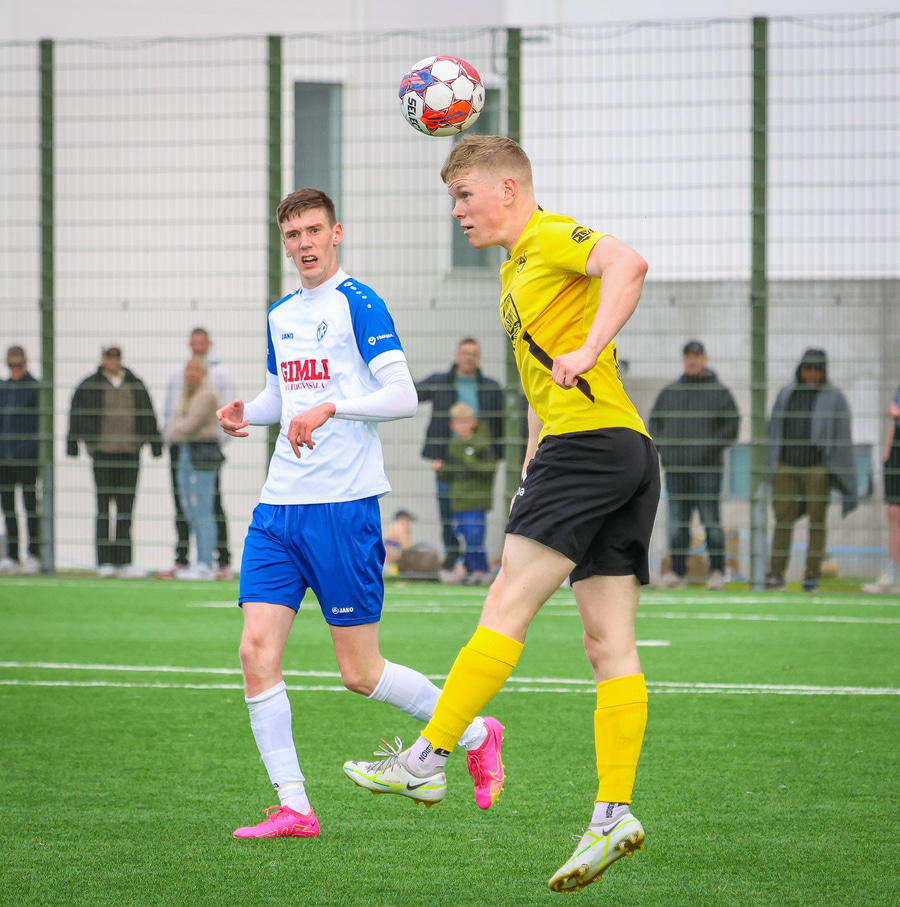 Frábær fyrirgjöf frá Einari og Ívan rís hæst í teignum.
