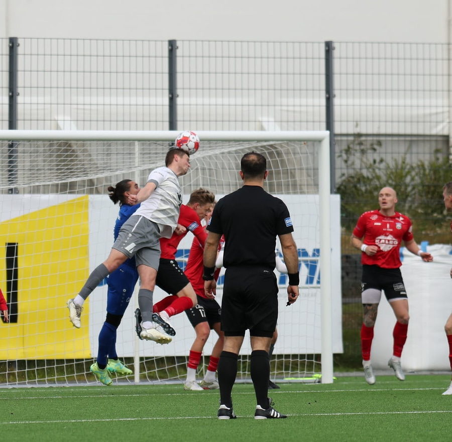 Afturelding með fyrirgjöf frá hægri og Anton Breki skorar næstum sjálfsmark þegar hann hreinsar boltann!