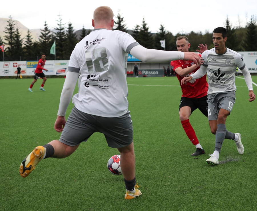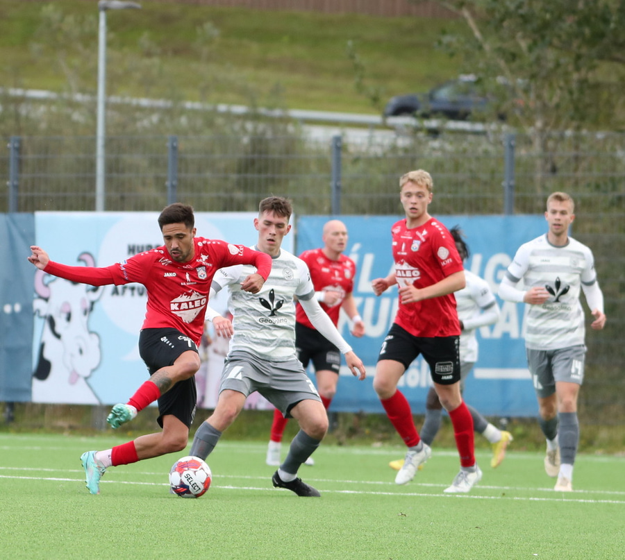 Ivo Braz með geggjaðan sprett og á svo fyrirgjöf sem Elmar Kári nær ekki að koma hausnum í.