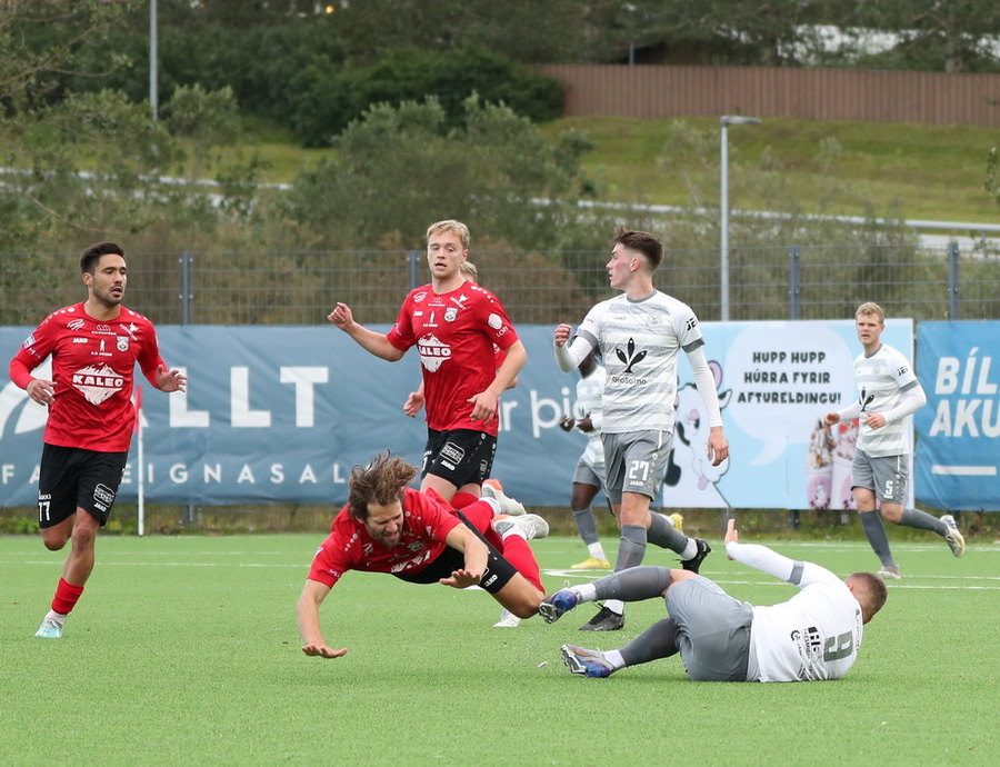 Það er gífurleg spenna bæði á toppi og á botni deildarinnar. Barátta Aftureldingar og ÍA um toppsæti deildarinnar er enn í fullum gangi og svo er ótrúleg spenna um hvaða lið fer niður með Ægi.