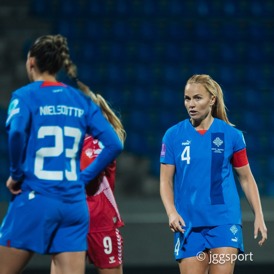 Allir leikmenn íslenska landsliðsins eru klárar í slaginn fyrir leikinn gegn Danmörku í Þjóðadeildinni annað kvöld. Nema Ingibjörg Sigurðardóttir sem er í leikbanni.