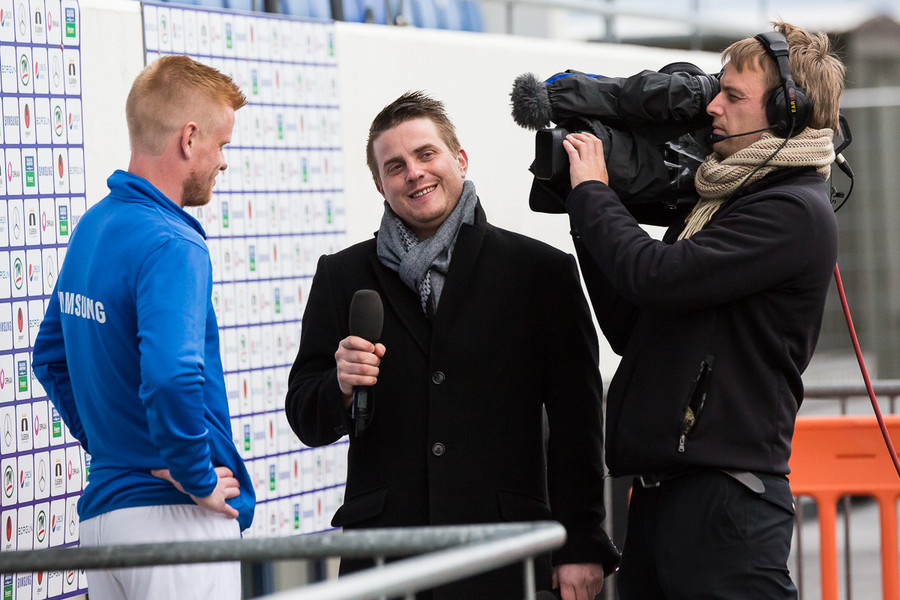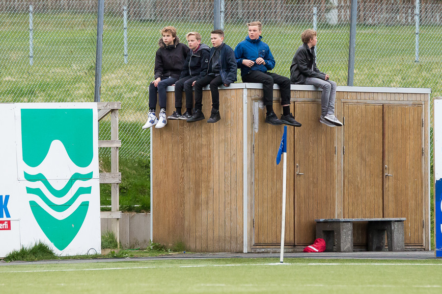 Fimm mínútur í leik og spennan nær heldur betur upp í blaðamannastúkuna. Svolítið hvasst í Garðabæ.