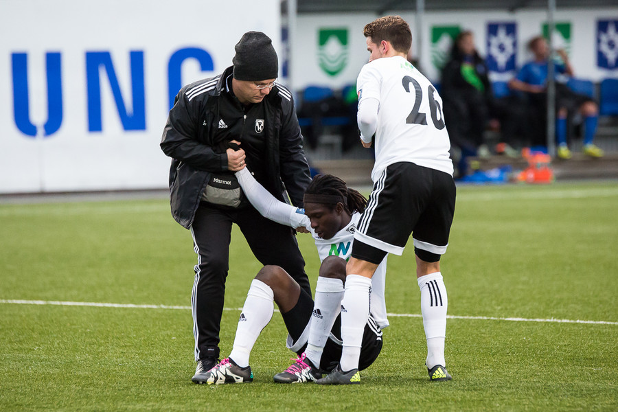 Böddi löpp er eitthvað meiddur. Fór í tæklingu á Ævar Inga, vann boltann en fór illa úr því einvígi.
