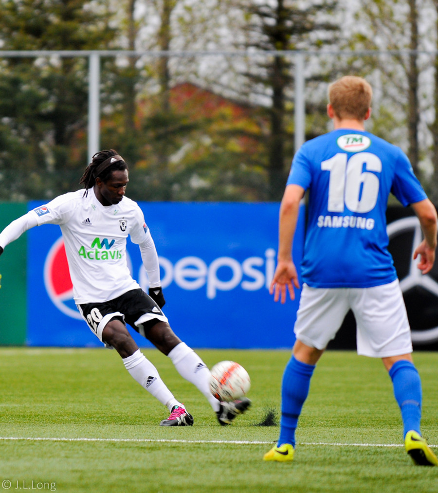 Fyrsta alvöru tilraun FH-inga. Þórarinn Ingi tekur fast utanfótarskot utan teigs en rétt framhjá. Kerr virtist vera með þetta alveg á hreinu og lét boltann fara.
