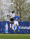 Stjarnan að sækjast eftir jöfnunarmarkinu. Guðjón Baldvins stekkur hæst í hornspyrnu Hilmars en nær ekki að hitta markið úr fínu færi.