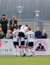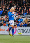 Steven Lennon á fyrstu tilraun seinni hálfleiks. Tekur skot utan teigs sem Kerr á ekki í teljandi vandræðum með.