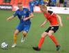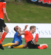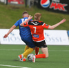 Axel Freyr sleppur einn í gegn en GEGGJUÐ tækling hjá Ásgeiri Eyþórs sem kemur í veg fyrir að Axel leggi hann í netið
