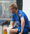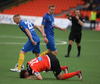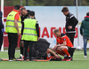 Keyrir inn í leikmann Fylkismann sem liggur eftir, sé ekki alveg hvern