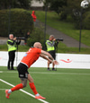 Ásgeir Eyþórs setur boltan í netið en virðist brjóta á Hákoni Rafni