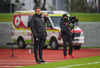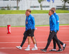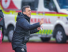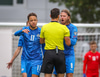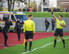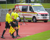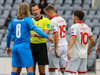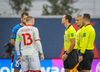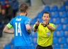 Þjálfari Makedóníu fær gult spjald fyrir kjaft.
