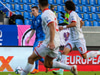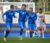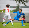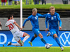Ísland lætur að sér kveða hér strax í upphafi. Mikael með sendingu inn í teiginn sem Viðar nær ekki að gera sér mat úr. Áfram heldur sóknin og á endanum á Albert Guðmundsson marktilraun yfir markið.