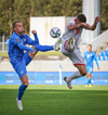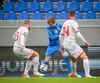 Makedónía kemst í hættulega sókn en em betur fer er sending Churlinov ekki góð.