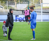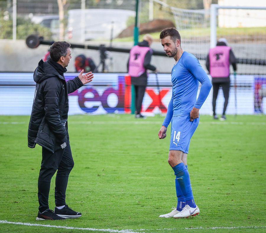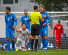 Albert og Ristovski að böggast eitthvað í hvor öðrum við hliðarlínuna og fá báðir spjald.