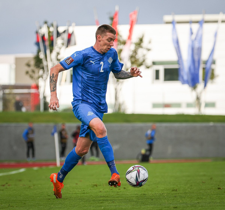 Gult spjald: Birkir Már Sævarsson (Ísland)