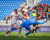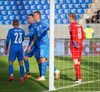 Haaa? Enis Bardi setur hendina viljandi í boltann til að stöðva sendingu. Fær ekki spjald frá Ivan Kruzliak dómara! Óskiljanlegt.