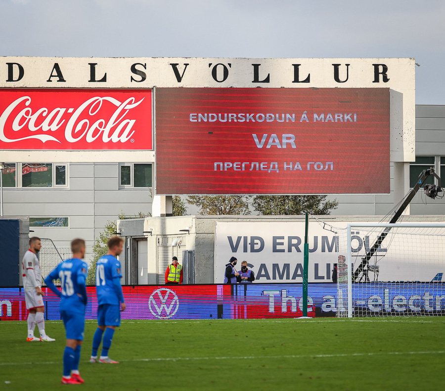 Pólverjinn Pawel Raczkowski verður VAR dómari. VAR var ekki notað í tapi Íslands gegn Rúmeníu á fimmtudaginn þar sem bilun kom upp í tæknibúnaði. Það eru komnar nýjar græjur til landsins og allt verður í standi í dag!
