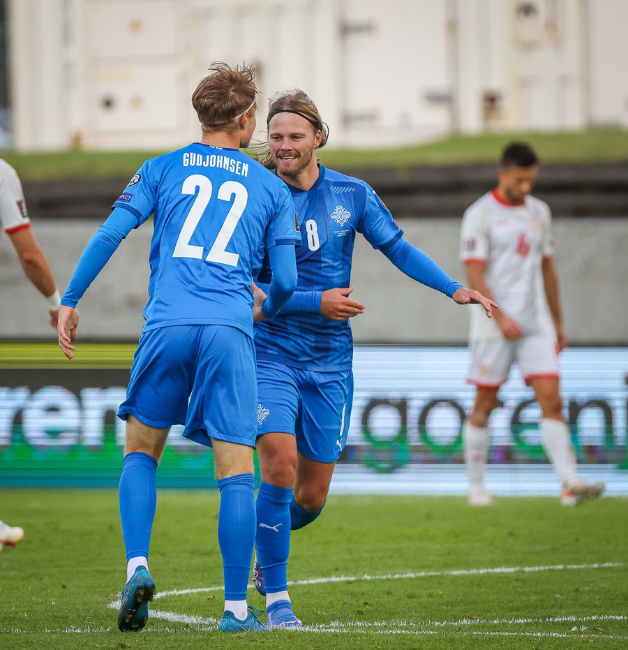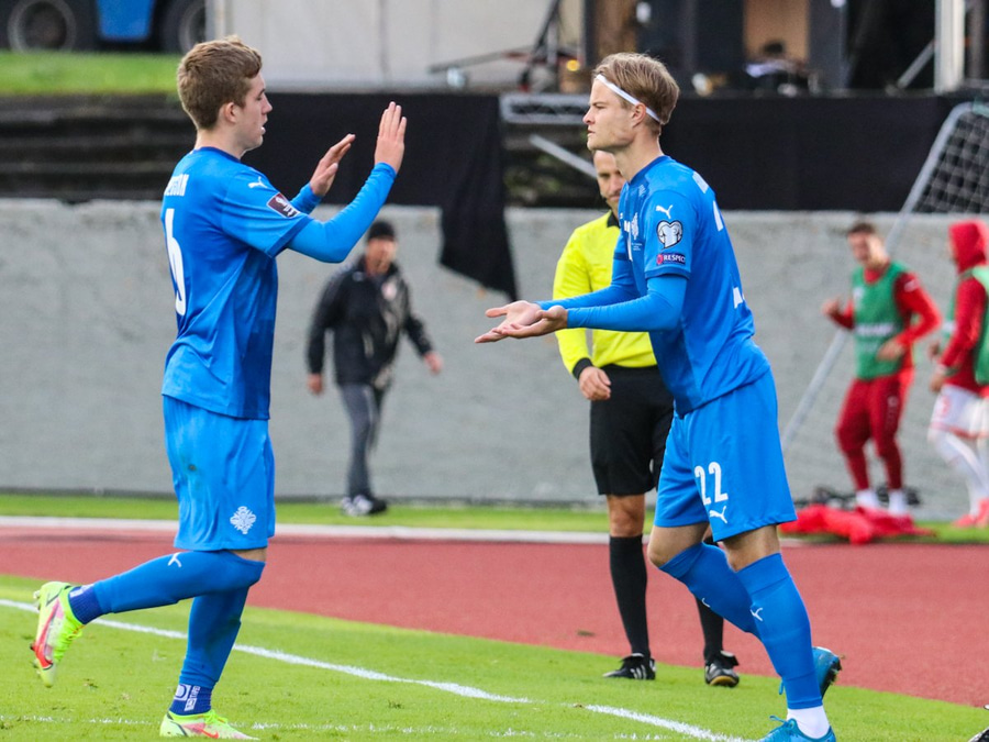 Birkir Bjarnason og Mikael Neville Anderson, tveir leikmenn sem voru ekki með á æfingu í gær, eru í byrjunarliðinu. Þá kemur Ísak Bergmann Jóhannsson inn á miðsvæðið.