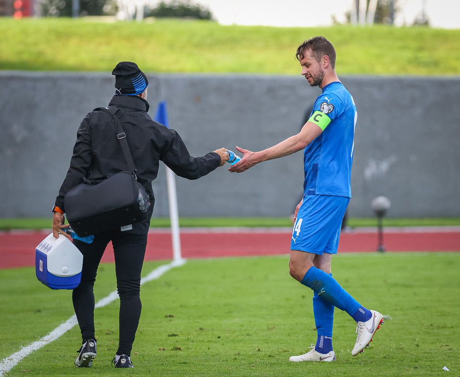 Kári Árnason kemur inn í vörnina og er með fyrirliðabandið. Jóhann Berg Guðmundsson byrjar ekki í dag þar sem hann er tæpur. Hann er ekki í leikmannahópnum í dag.