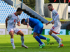 Leikmaður Norður-Makedóníu með galna tæklingu og óskiljanlegt að hann hafi ekki fengið gult. Sleppur með tiltal.