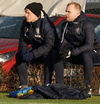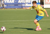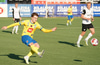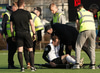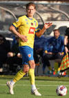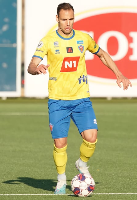 Fær gult fyrir brot á Birni Daníel sem er borinn af velli.