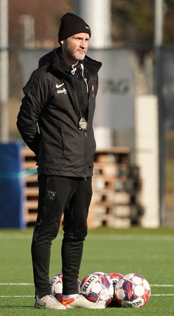 Vuk Oskar með boltann við D-bogann og tekur skotið í litlu jafnvægi og setur boltann framhjá.