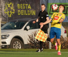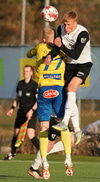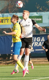 Björn Daníel Sverrisson með skalla eftir hornið en Steinþór Már í marki KA vel á verði og ver vel.