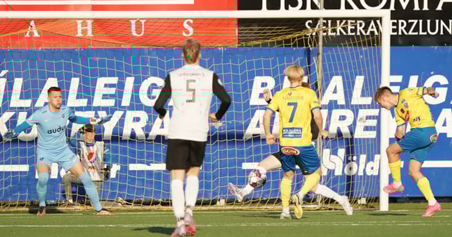 KA nær tveggja marka forystu aftur! Hrannar sýndist mér með sendingu innfyrir á Elfar sem snýr og skrúfar boltann í netið.