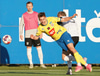 Gestir hafa eignað sér boltann en ná ekkert að skapa sér. Þetta byrjar ekki á neinni flugeldasýningu.