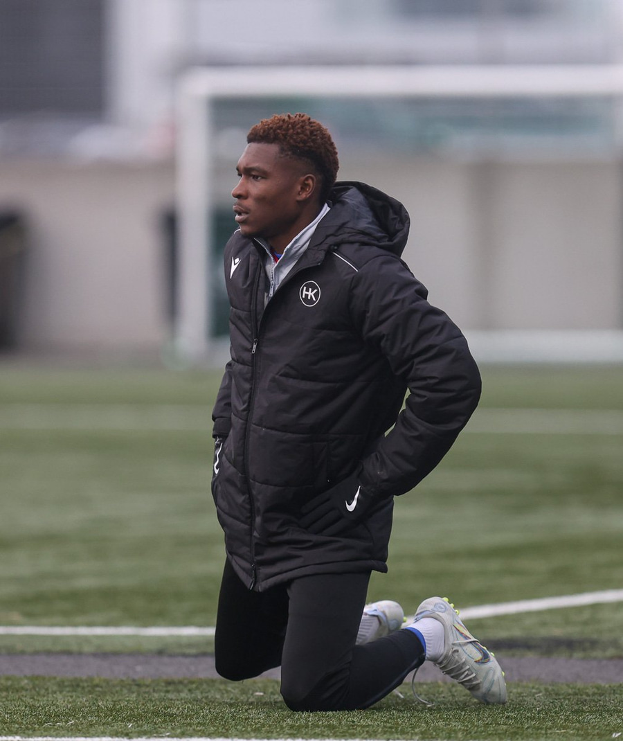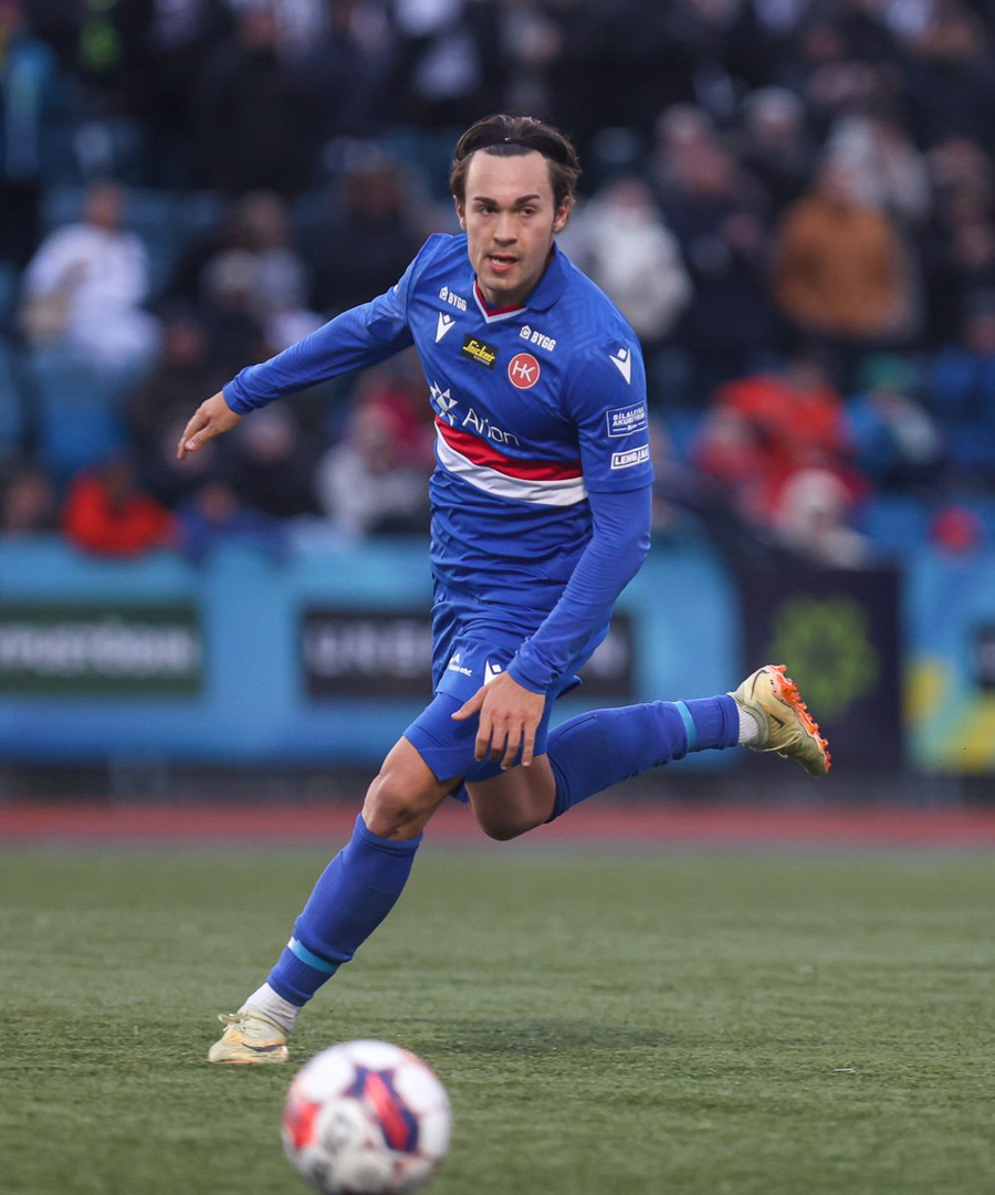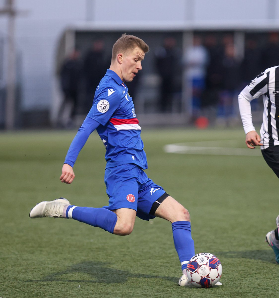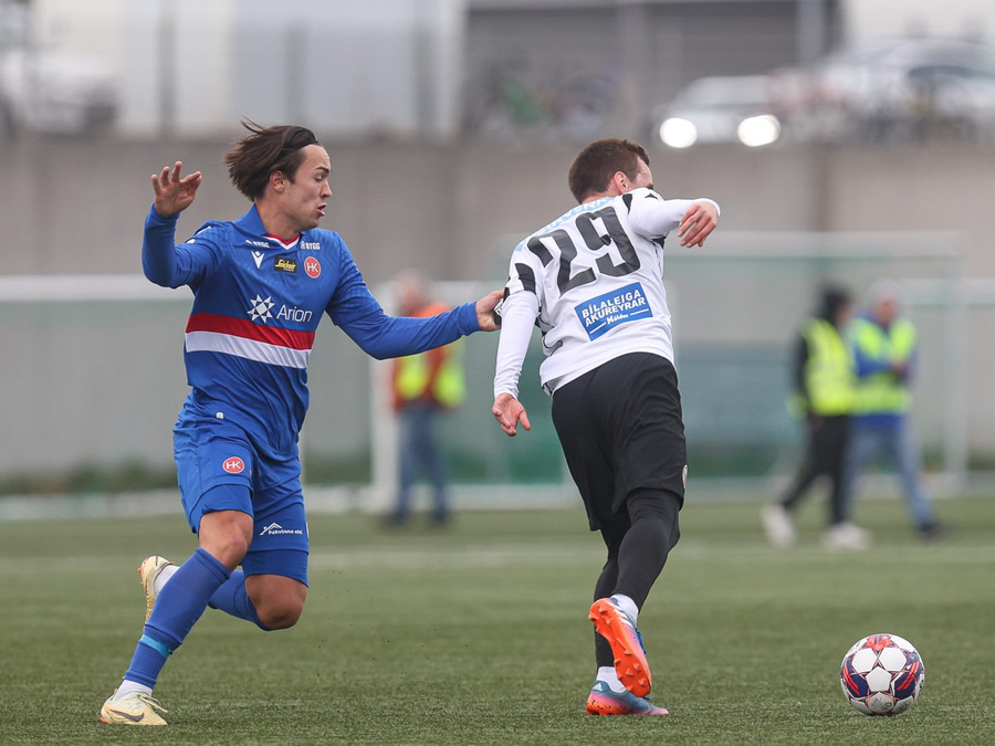 HK fær aukaspyrnu úti á hægri kantinum. Ívar með boltann inn á teig, Jakob skallar til hliðar, Arnþór reynir aðra fyrirgjöf, Ahmad nær til boltans en skallinn laus og Simen getur tekið boltann upp.