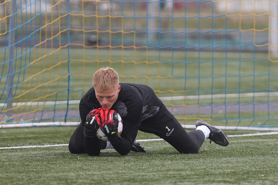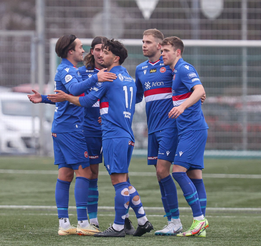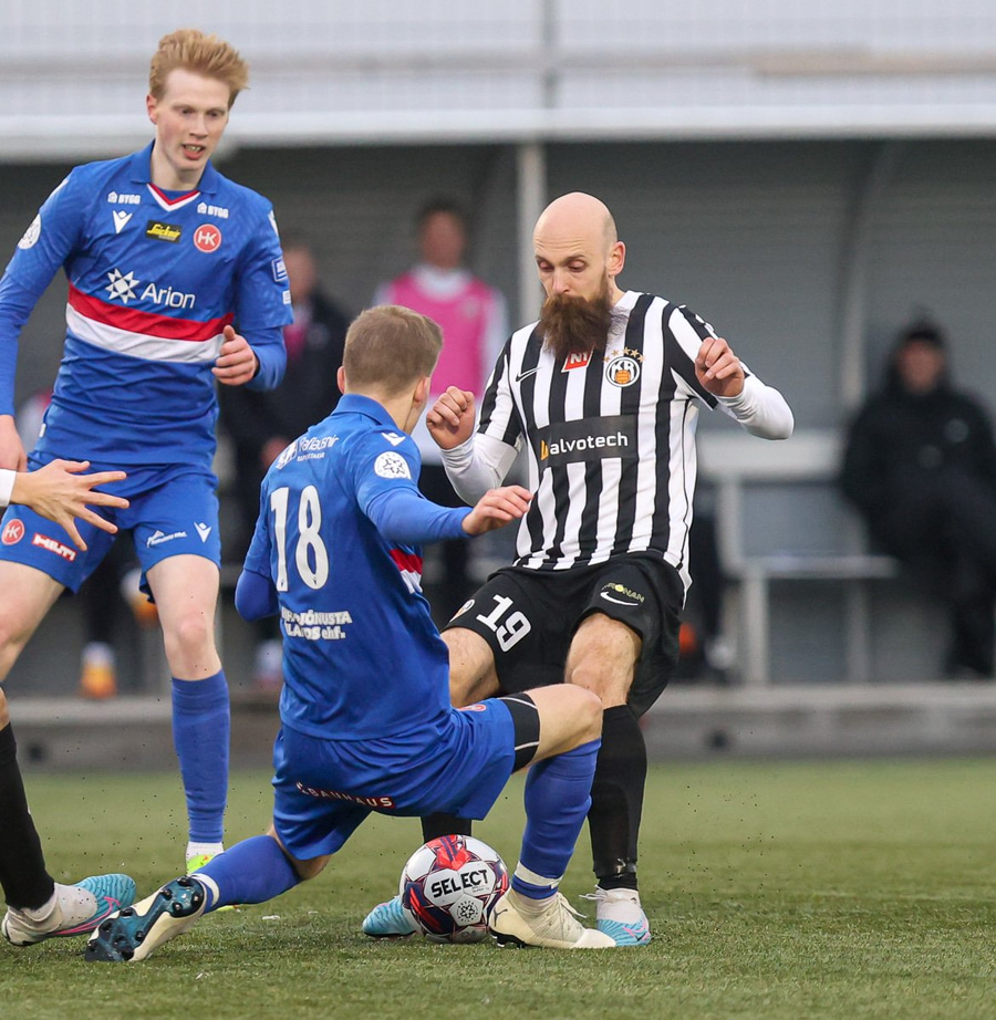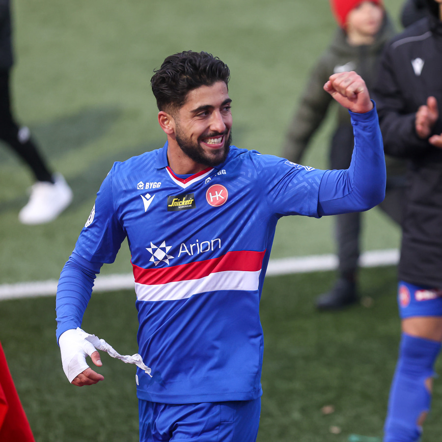 HK fær aukaspyrnu úti á hægri kantinum. Ívar með boltann inn á teig, Jakob skallar til hliðar, Arnþór reynir aðra fyrirgjöf, Ahmad nær til boltans en skallinn laus og Simen getur tekið boltann upp.